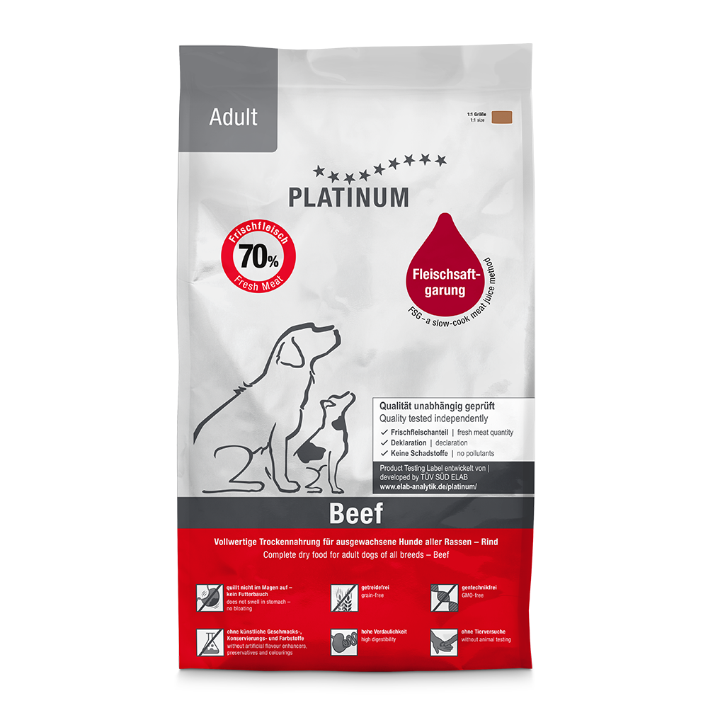 PLATINUM Adult Hundefoder Oksekød og Kartoffel er et sundt komplet hundefoder der sikre din hund alt det den har behov for, fodret indeholder kun ingredienser af høj kvalitet, der også er egnet til menneske føde