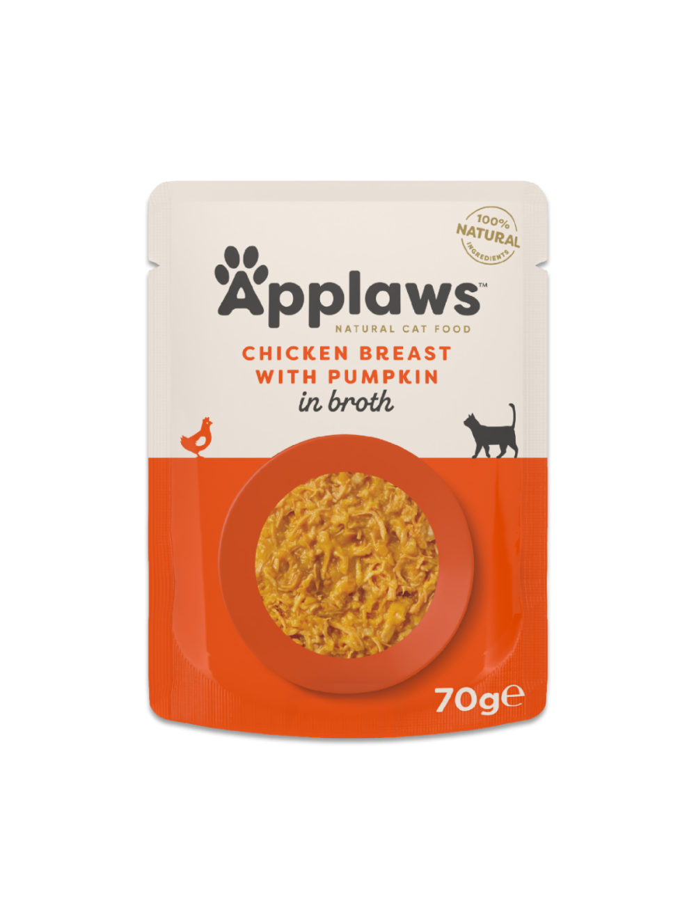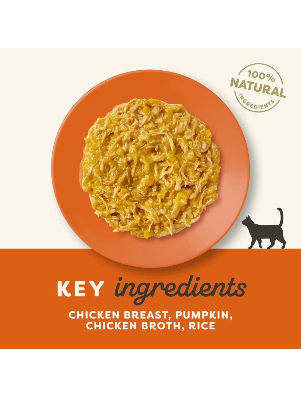 Kyllingebryst 50 %, græskar 25 %, kyllingebouillon, ris.