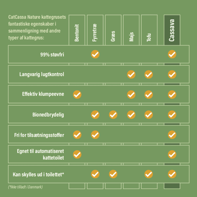 Skift dit kattegrus fra bentonit til CatCassa Nature kattegrus med naturens rødder fra Cassavaplanten