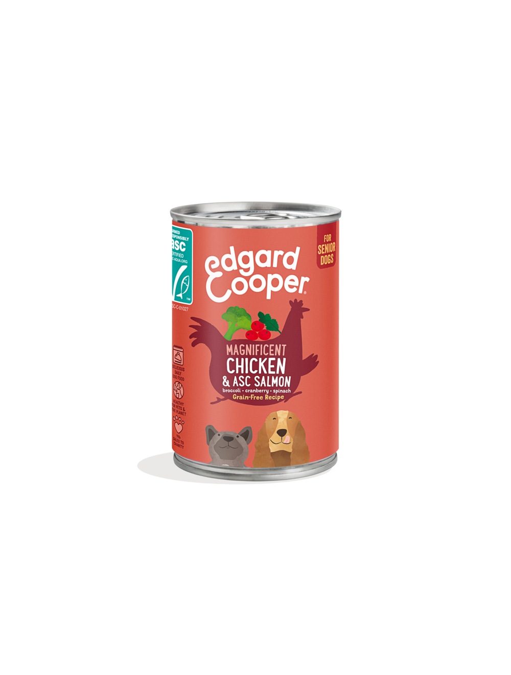 kylling 50%, ASC* laks 10%, kartoffel 4%, ærter 2%, broccoli (tørret) 0,5%, mineraler, mannan-oligosaccharider (MOS), hørfrø, lakseolie, fructo-oligosaccharider (FOS), spinat (tørret) 0,06%, blåbær (tørret) 0,05%, tranebær (tørret) 0,05%, glucosamin, chondroitinsulfat, tørret fennikel 0,01%, tørret kommen 0,01%, tørret røllike 0,01%, tørrede brombærblade 1%, 0. tørrede brombærblade 0.10% tørrede brombærblade blomster 0,01%, tørret ensianrod 0,01%, tørret centaury 0,01%