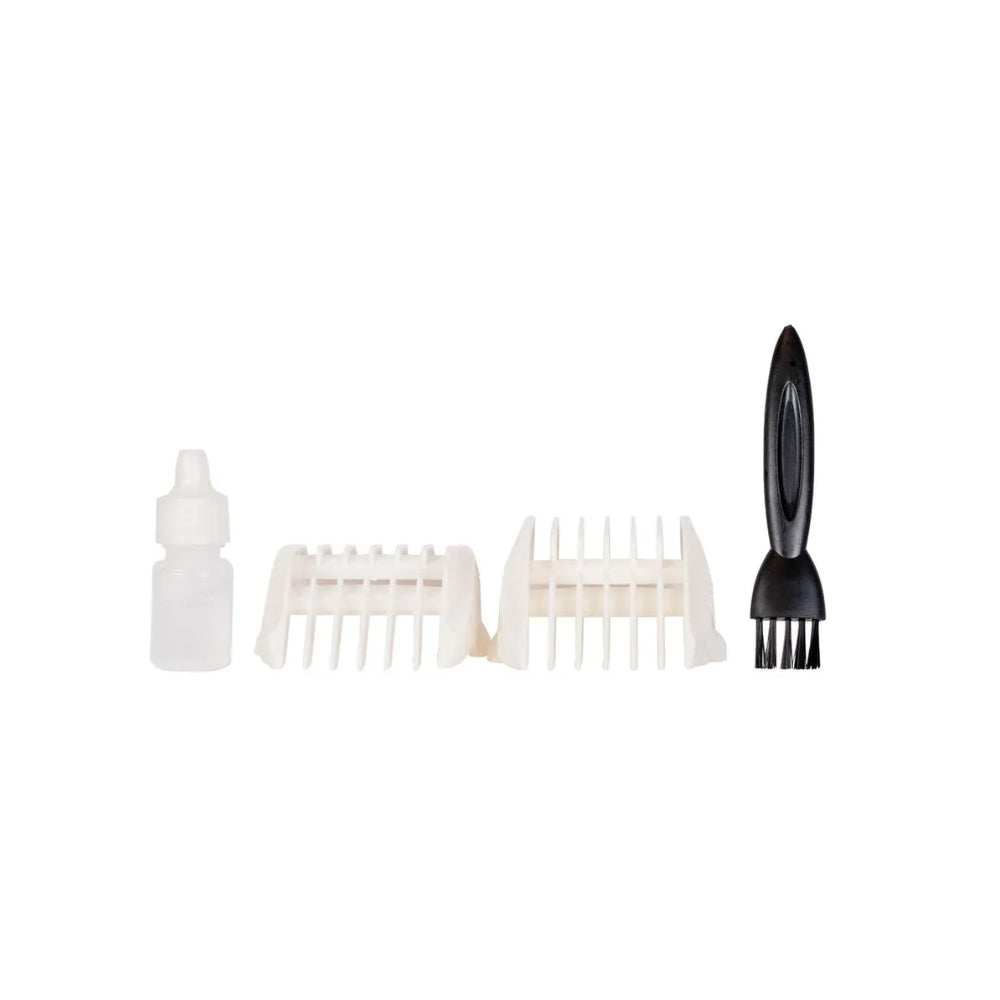 Lille og praktisk klippemaskine perfekt til små hunde. Ideel til helklipning samt trimning af poter og næse. Inkluderer to dobbelte plastafstandsstykker med længderne 3, 6, 9 og 12 mm. Til nem rengøring medfølger rengøringsbørste og olie. Skærbredden er 3,8 cm. Batterier medfølger ikke.