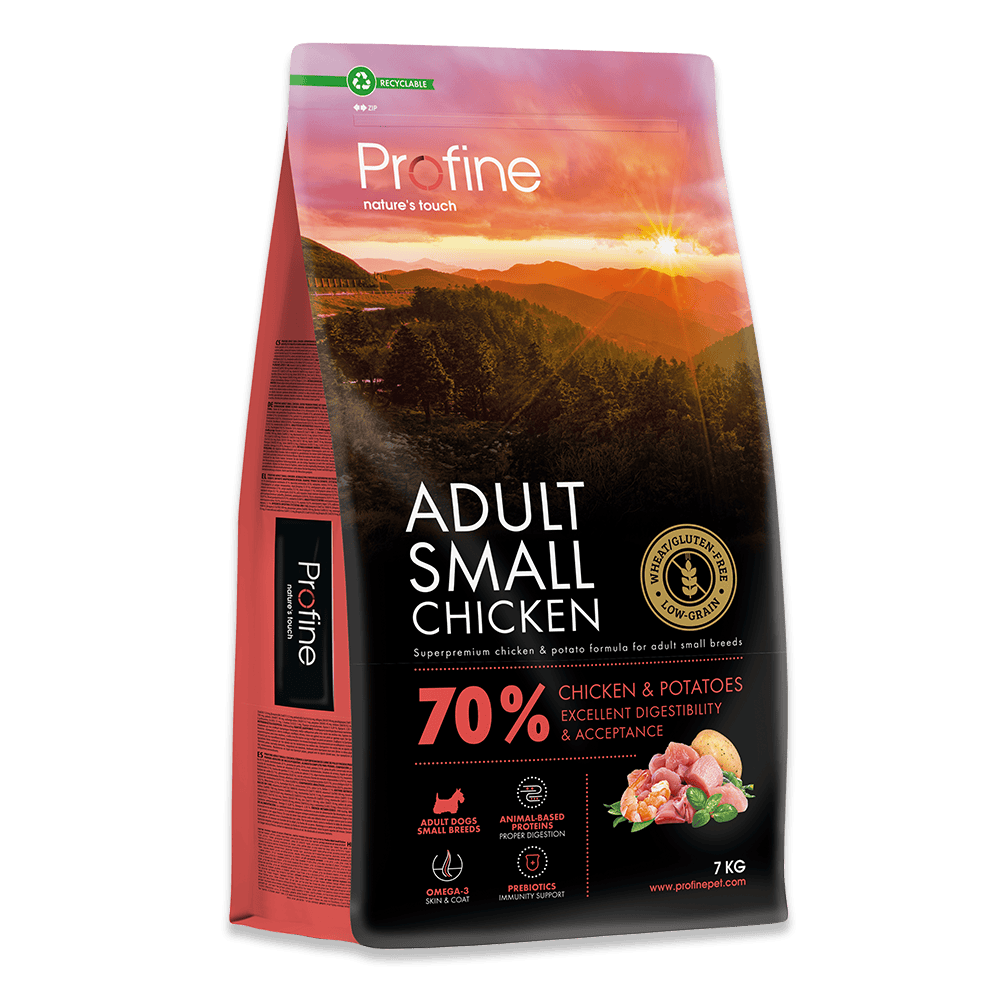 Profine Adult Small Chicken er kvalitetsfoder til de mindre hunde.