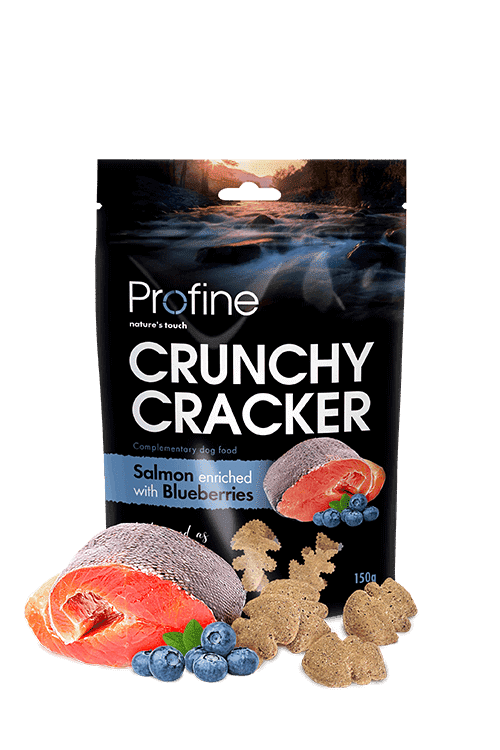 Profine Crunchy Cracker – Salmon & Blueberries er en lækker hundesnack med laks og blåbær.