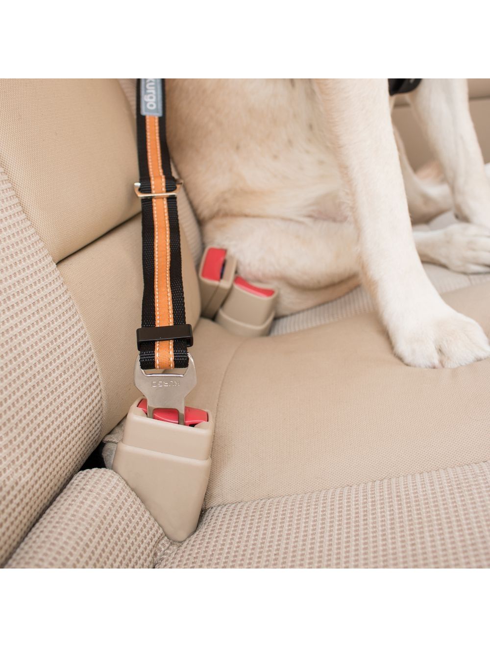 Du skal blot klikke sikkerhedsselen fast og derefter sætte karabiner på din hunds seletøj.