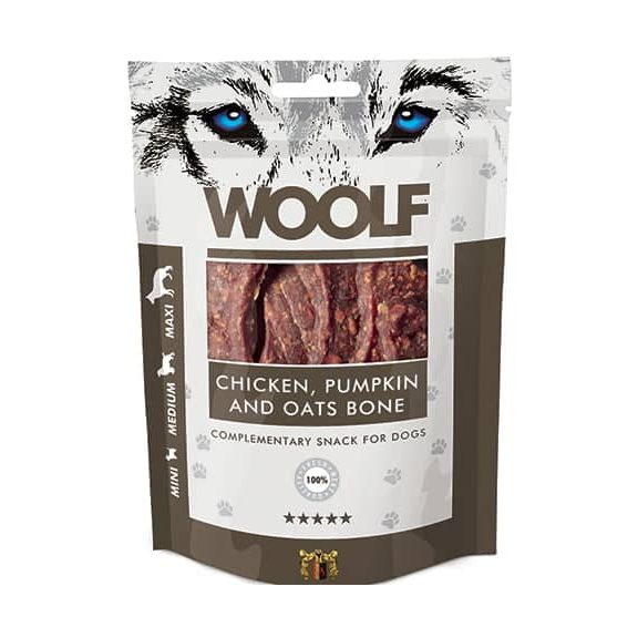 Woolf Chicken Pumpking & Oats Bone er uden kunstige tilsætningsstoffer, konserveringsstoffer eller farvestoffer.